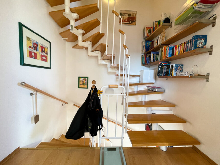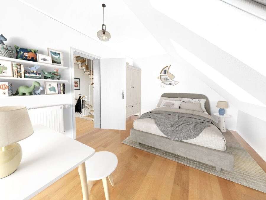 Über einer einladenden Diele mit Garderobe sowie einem Gäste-WC erreichen Sie die Küche. Die Küche lädt zu entspannten Kochabenden mit Freunden und der Familie ein. Weiterführend eröffnet sich Ihnen das Herzstück des Hauses, das Wohnzimmer mit Essbereich und Zugang zum Garten. Dieser bietet mehr als ausreichend Platz für die Familie und einen überdurchschnittlichen Gartenbereich. Im Obergeschoss befinden sich zwei Kinderzimmer und ein Arbeitszimmerzimmer. Auf dieser Ebene findet sich auch das Duschbad mit Badewanne und WC. Dieses ist mit einem Tageslichtbad ausgestattet. Im Dachgeschoss befindet sich ein Kinderzimmer.