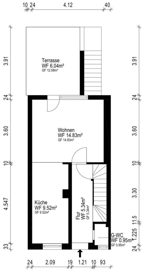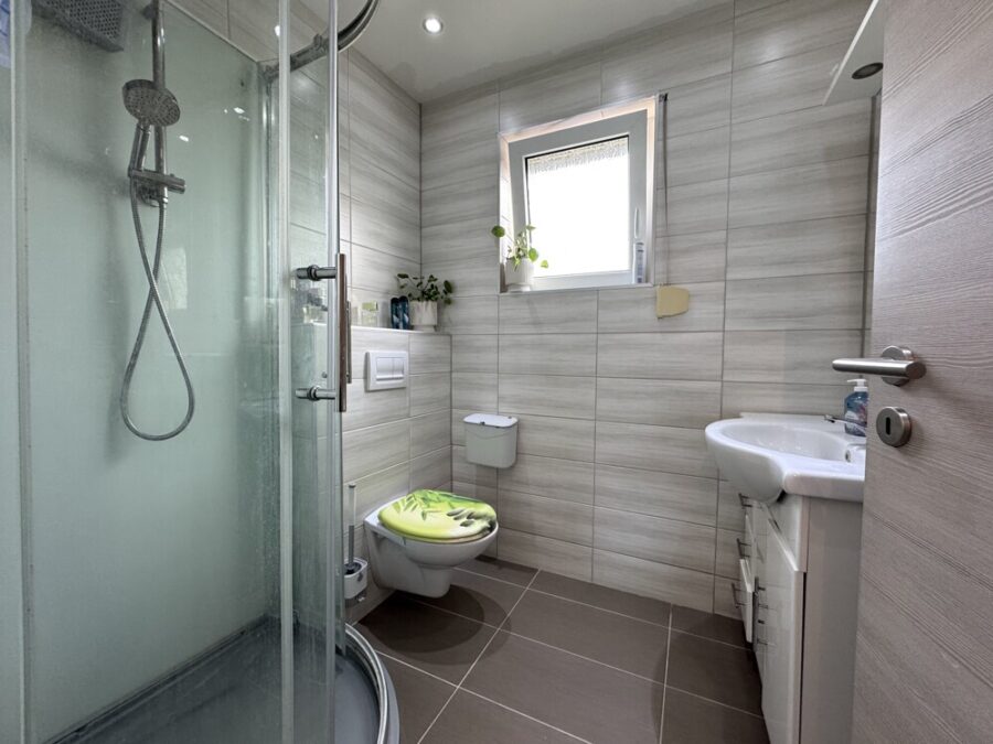Sie erreichen vom Eingangsbereich zuerst das Gäste-WC. Die Küche lädt zu entspannten Kochabenden mit Freunden und der Familie ein. Die Einbauküche ist im Kaufpreis enthalten. Weiterführend eröffnet sich Ihnen das Herzstück des Hauses, das Wohnzimmer mit kleinem Essbereich und Zugang zum Garten. Dieser ist überdurchschnittlich groß, bietet aber mehr als ausreichend Platz für die Familie.